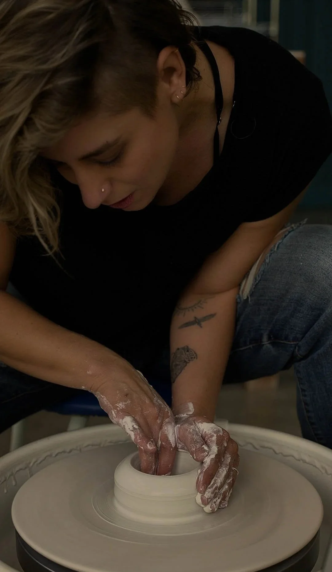 The duality of Crystal’s pottery aesthetic comes through with the chaotic and, often-unpredictable, alchemy of the pit firing process as it contrasts the bone-white meticulously thrown and hand-carved translucent porcelain. In life there is always room for intention and pause among beautiful chaos.